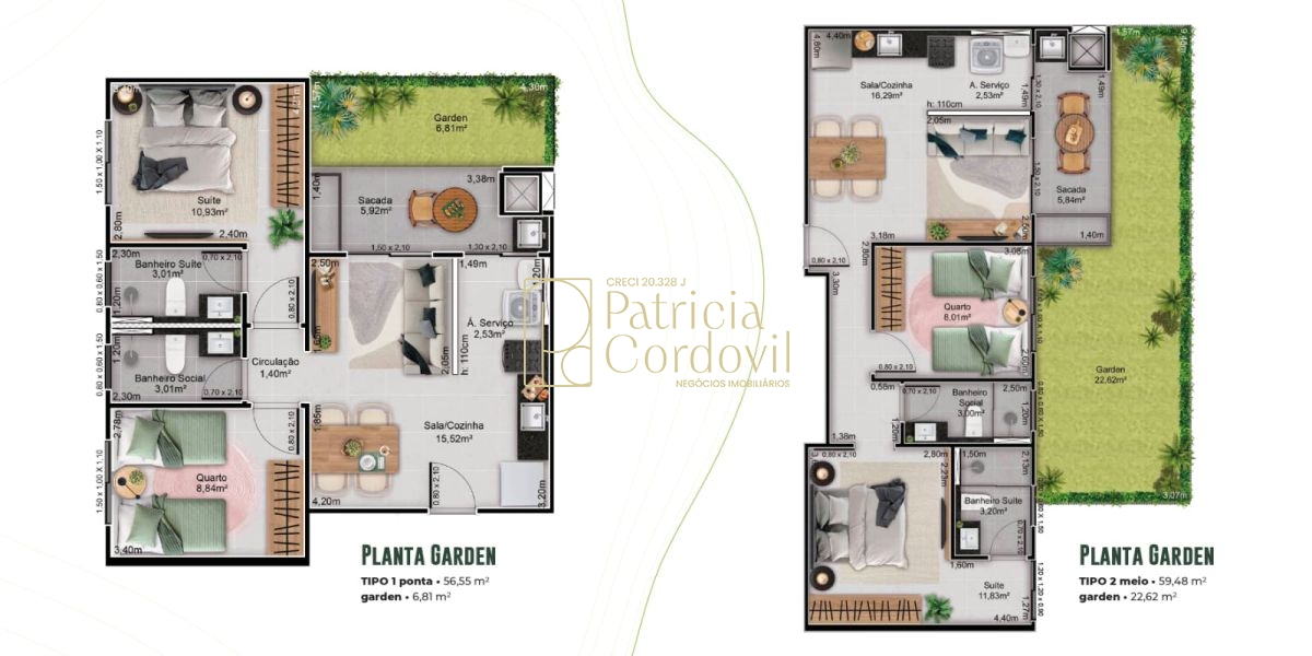 - DIMENSÕES: 56,55M2 E 59,48M2
